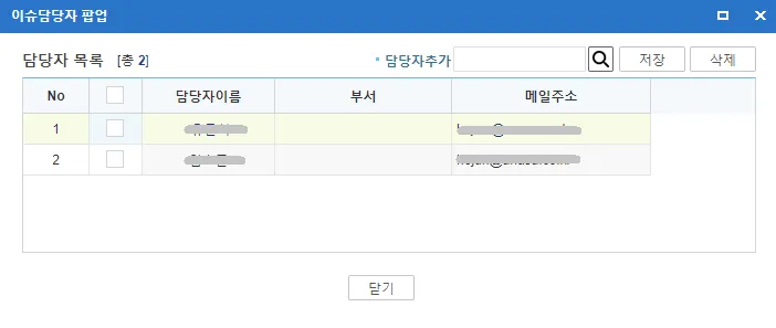 이슈담당자 등록 권한 - [버튼권한관리 - 이슈담당자] 권한 설정에 따름