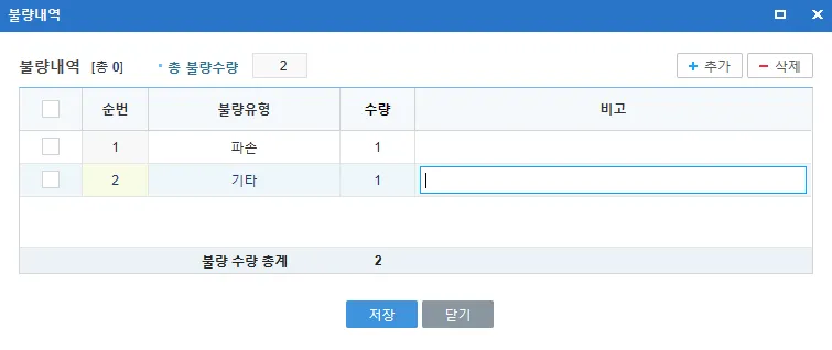 불량품에 대해 불량유형을 등록하여 이력을 관리합니다.