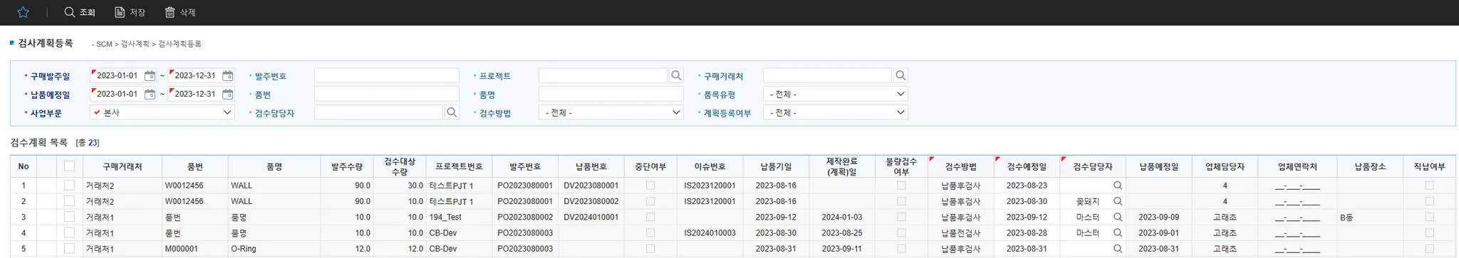 검사계획등록