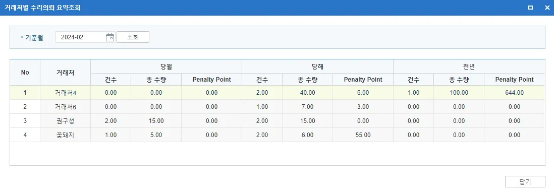 조회된 행을 더블클릭하면 [수리의뢰입력]화면으로 Jump할 수 있습니다.