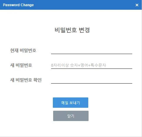 계정의 신규생성 후 최초 로그인시 메일 인증을 통한 비밀번호 변경 필수