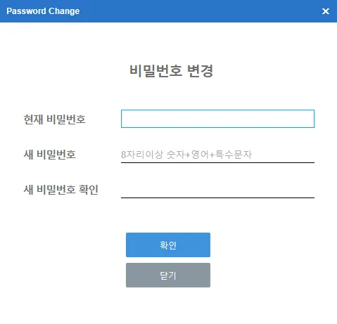 초기화 상태에서는 로그인시 비밀번호 변경 후 로그인이 가능합니다.