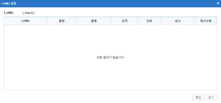 LotNo : 해당 품목의 Lot재고 리스트에서 선택