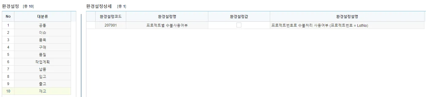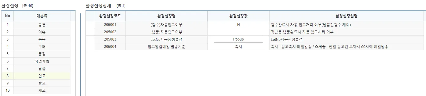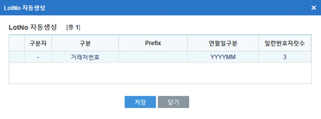 LotNo자동생성설정 : [입고등록] 화면에서 사용할 ‘LotNo’의 자동생성 규칙 설정