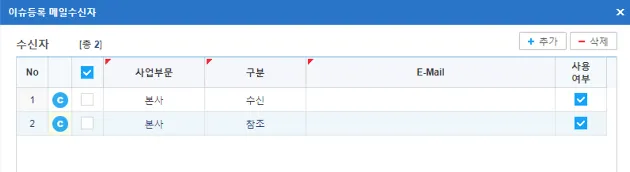 메일수신자 : 이슈등록 메일알림 사용시 메일수신대상자