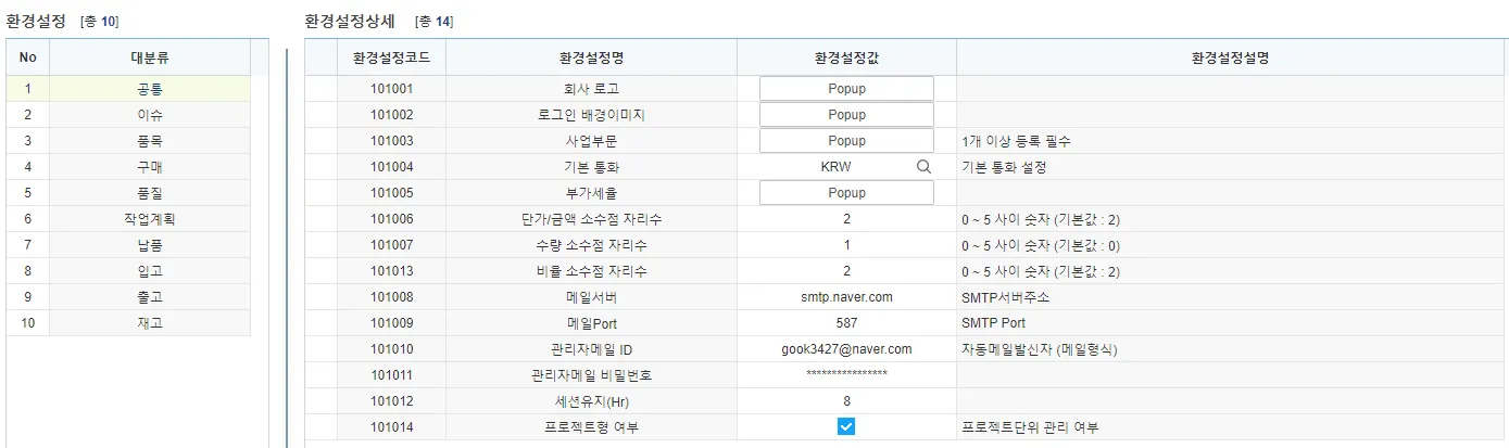 단가/금액 소수점 자리수 : 금액 컬럼에서 사용할 소수점 자리수 설정 (기본값 : 2)