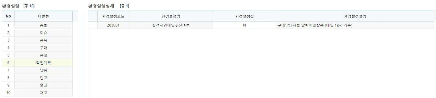 실적지연메일수신여부 : 협력사에서 진행되는 작업계획대비 실적이 지연되는 경우 메일 알림 사용 여부