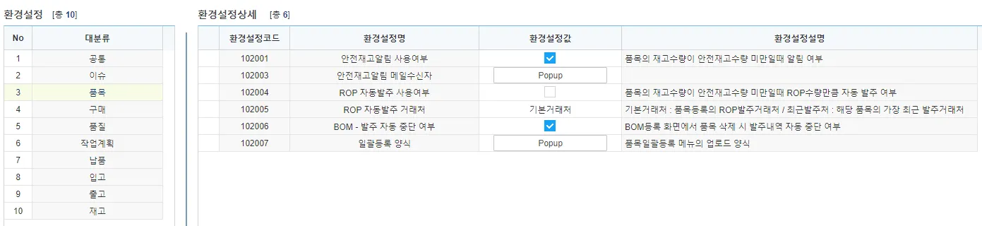 ROP 자동발주 사용여부 : 출고 시 재고수량이 안전재고수량보다 작아지는 경우 자동발주기능 사용여부