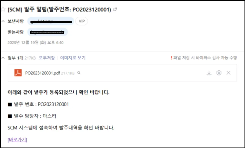 거래처로 발주 알림 메일 (발주알림메일과 동일)