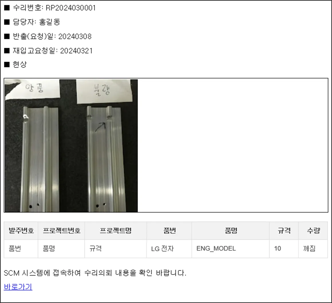 입고후 발견 된 수리건에 대해 구매거래처로 재반출하여 수리를 요청할 수 있습니다.