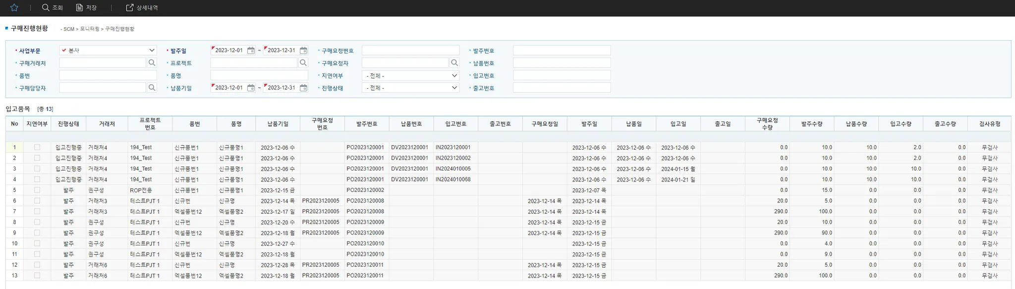 발주품목의 진행현황을 모니터링할 수 있습니다.